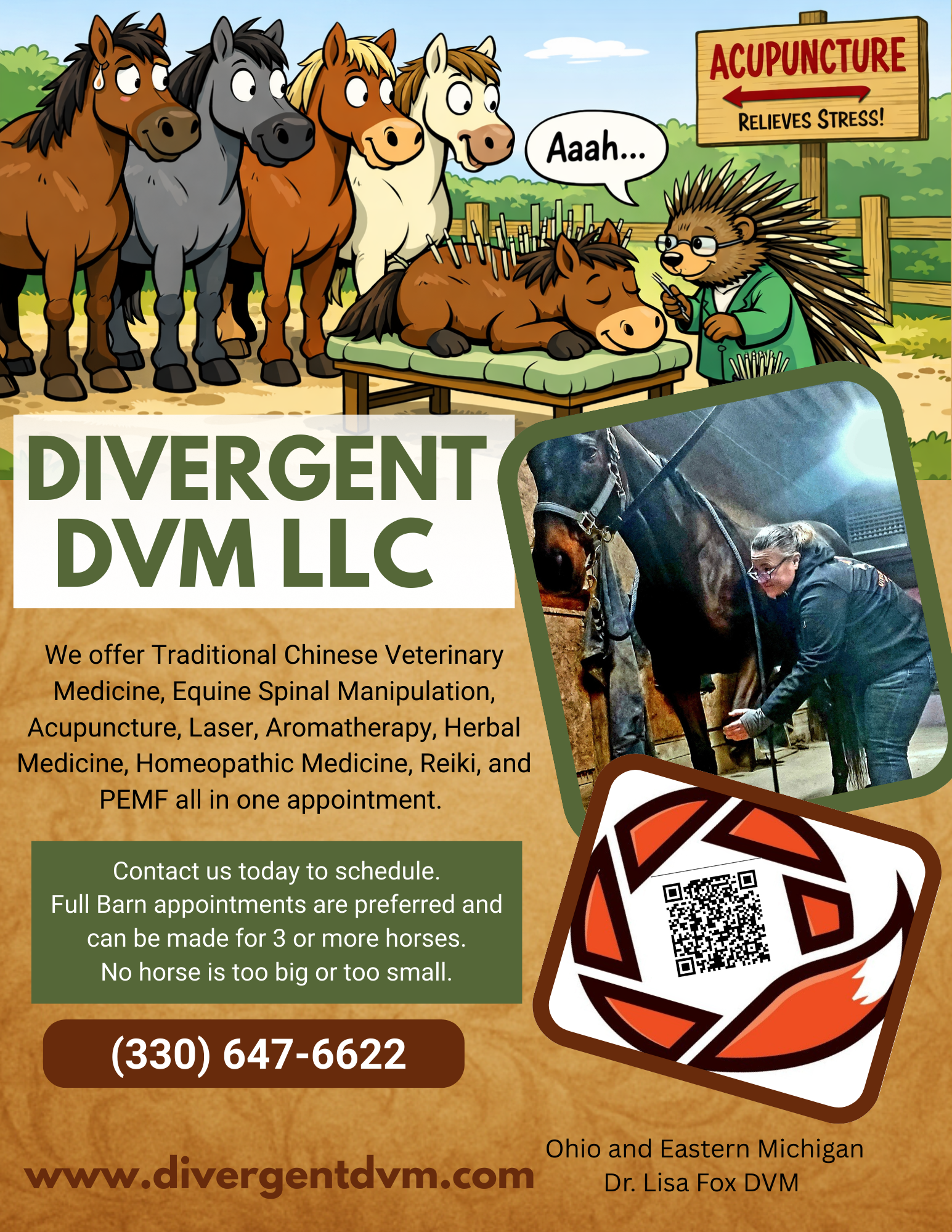 Text 330-647-6622 or email divergentdvm@aol.com to schedule your appointments for the spring show season.